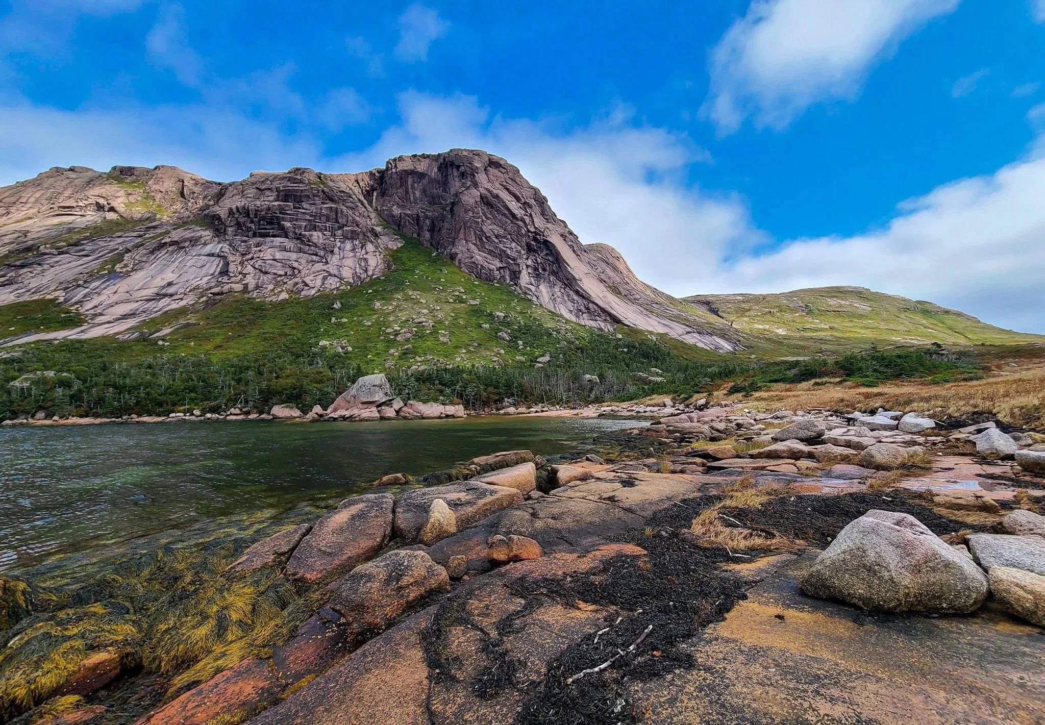 A moderate hike with rewarding harbour views. On a clear day, you can see St. Pierre in the distance — an ideal picnic spot overlooking the water.